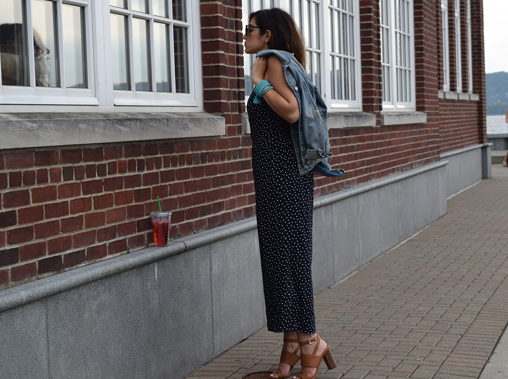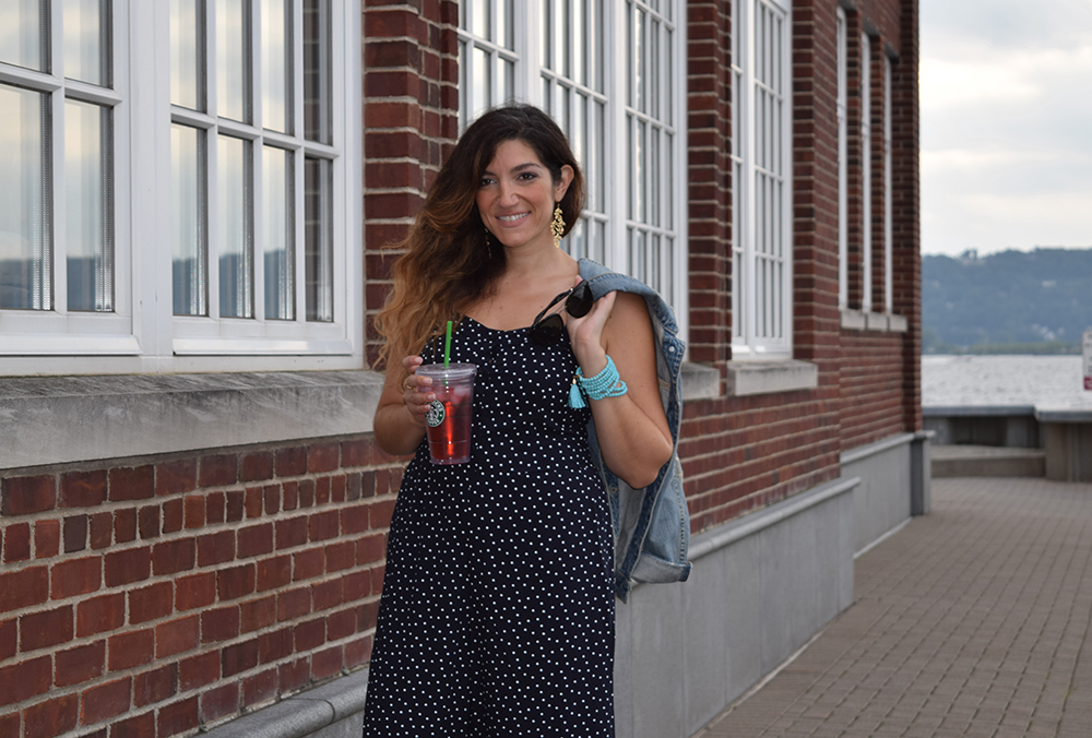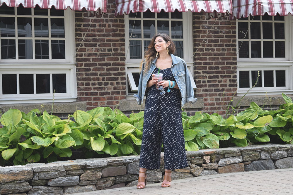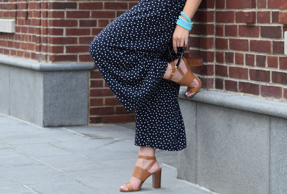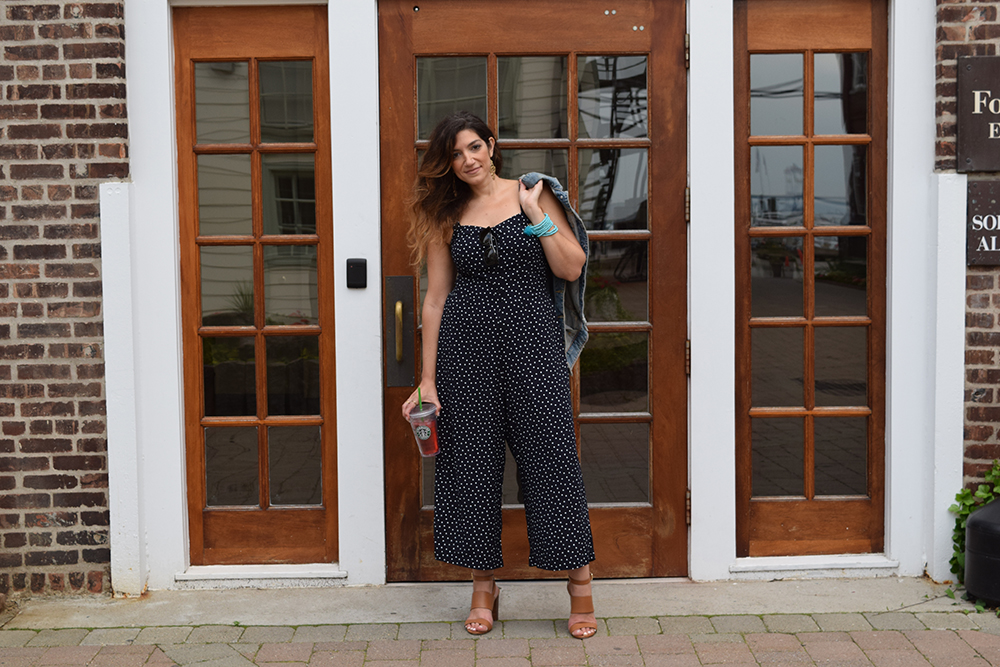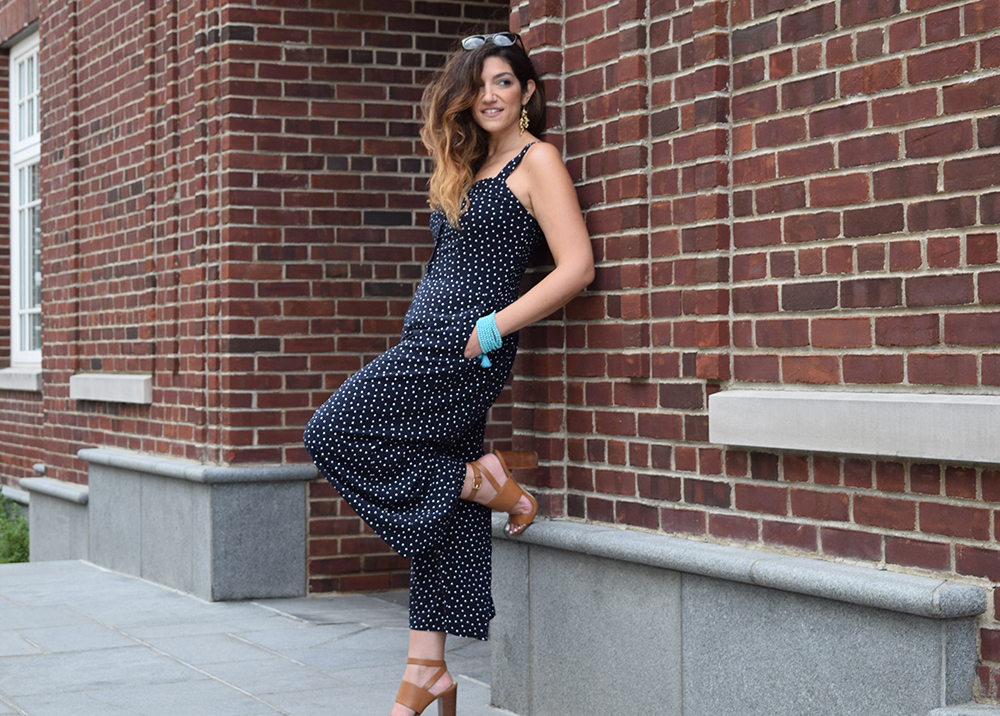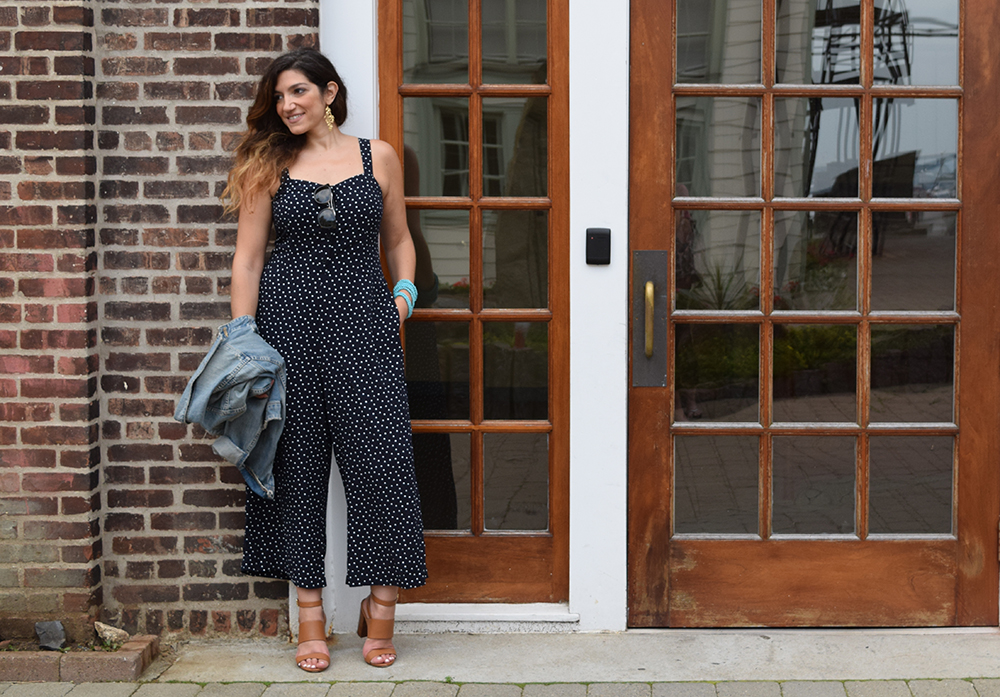 I work in an office environment all year round and this polka dot jumpsuit is so versatile and comfy! It’s a great piece for teachers back to school and it can easily transition from day to night. Paired with a chunky heel, this outfit makes it so easy to wear all day long and feel super stylish in the process! And you know the best part, it has pockets!!!