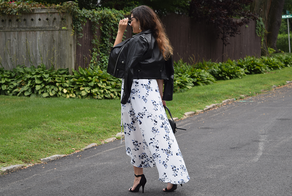 Leather Jacket: Theory / Bag: The Gap / Dress: Lord & Taylor / Shoes: LC Lauren Conrad (Kohl’s) / Sunnies: Marc Jacobs / Earrings & Rings: Stella & Dot