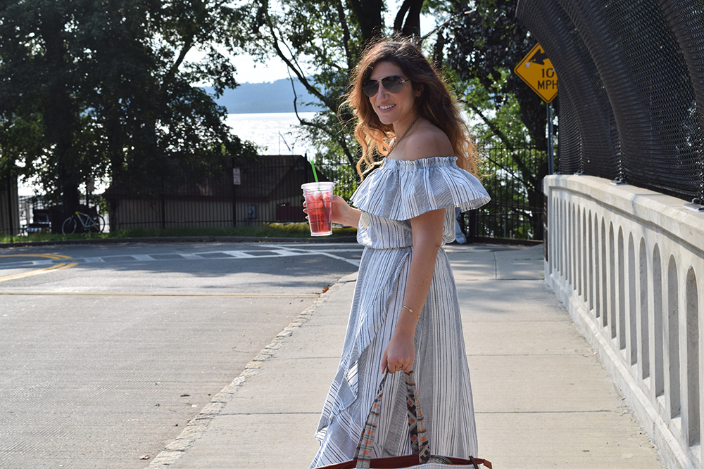 Dress: Express / Sunnies: Rayban / Bag: Steve Madden / Sandals: The Gap / Bracelet: Stella & Dot